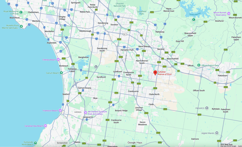 The Tulliallan Avenue of Elms is roughly situated at the crossroads of these four suburbs:
